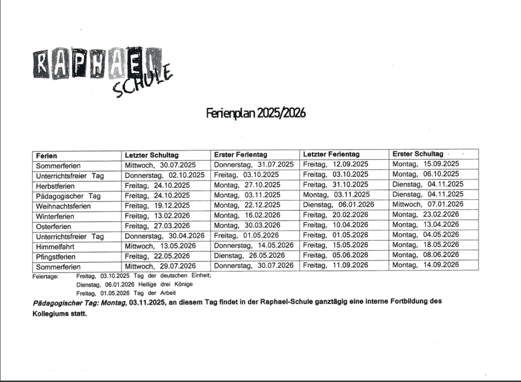 Ein Schultag beginnt um 7:45 Uhr und endet um 13:00 Uhr, für die erste und zweite Klasse mitunter auch schon um 12:15. Eine Kernzeitbetreuung ist bis 13:00 für alle gewährleistet. Einzelne Nachmittagsunterrichte gibt es erst in höheren Klassen.